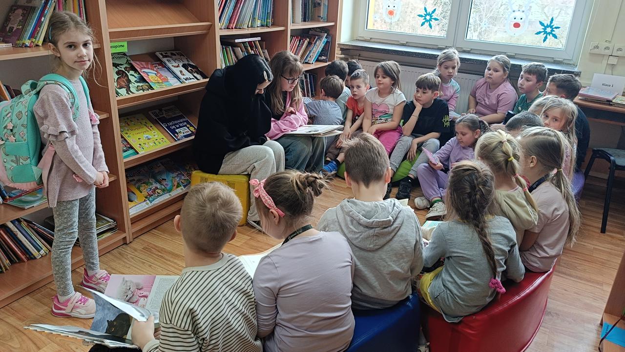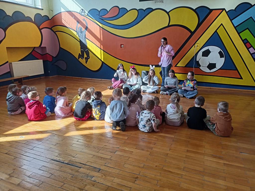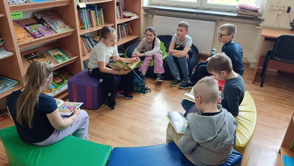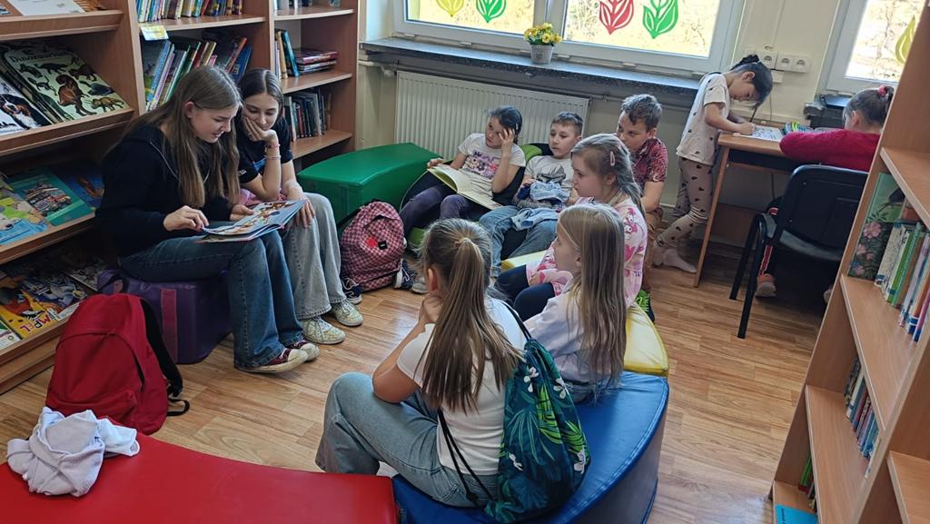 Kontynuowano także akcję czytania bajek podczas przerw, której celem jest wyciszenie uczniów oraz stworzenie przyjaznej przestrzeni do odpoczynku i wspólnego spędzania czasu. W marcu wolontariusze zaprosili również przedszkolaki do szkoły, aby przeczytać im bajkę oraz zorganizować dla nich czas w szkolnej przestrzeni poprzez wspólne rozmowy i zabawy.