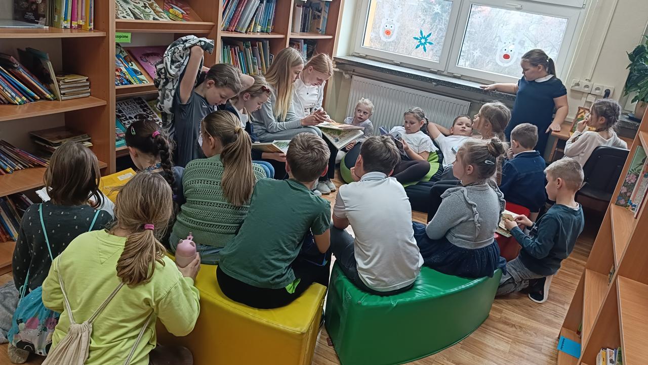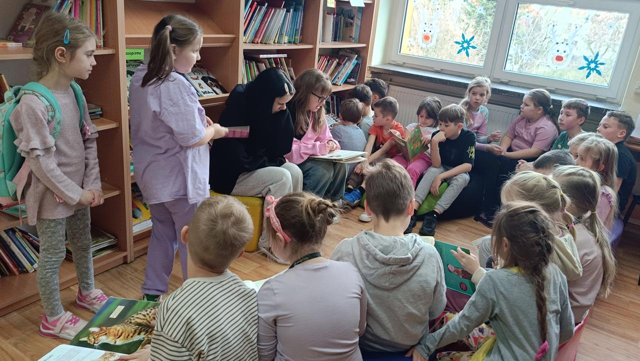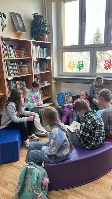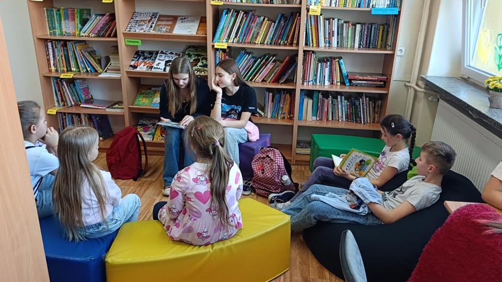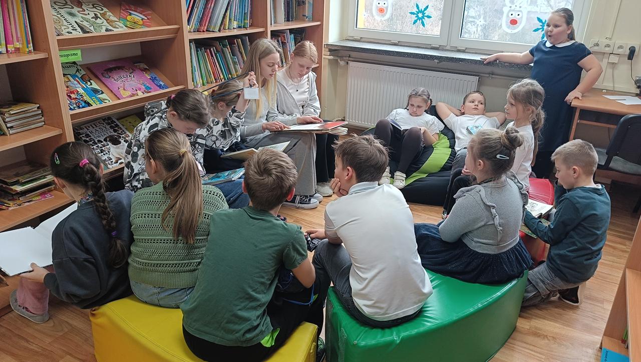 Kontynuowano także akcję czytania bajek podczas przerw, której celem jest wyciszenie uczniów oraz stworzenie przyjaznej przestrzeni do odpoczynku i wspólnego spędzania czasu. W marcu wolontariusze zaprosili również przedszkolaki do szkoły, aby przeczytać im bajkę oraz zorganizować dla nich czas w szkolnej przestrzeni poprzez wspólne rozmowy i zabawy.